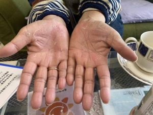 アトピーをお持ちということで、IZUMIOで手をマッサージしようとすると手のひらが本当にお気の毒でした。
